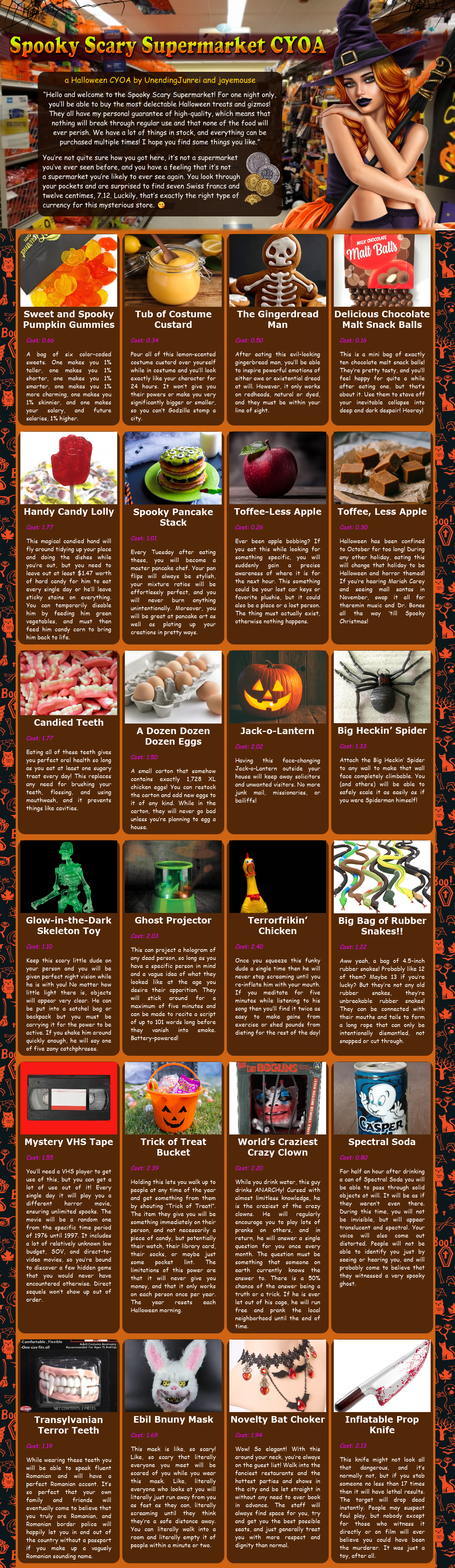 Spooky Scary Supermarket CYOA - A Halloween CYOA where you get to choose from a selection of cute Halloween inspired snacks and knick-knacks.
