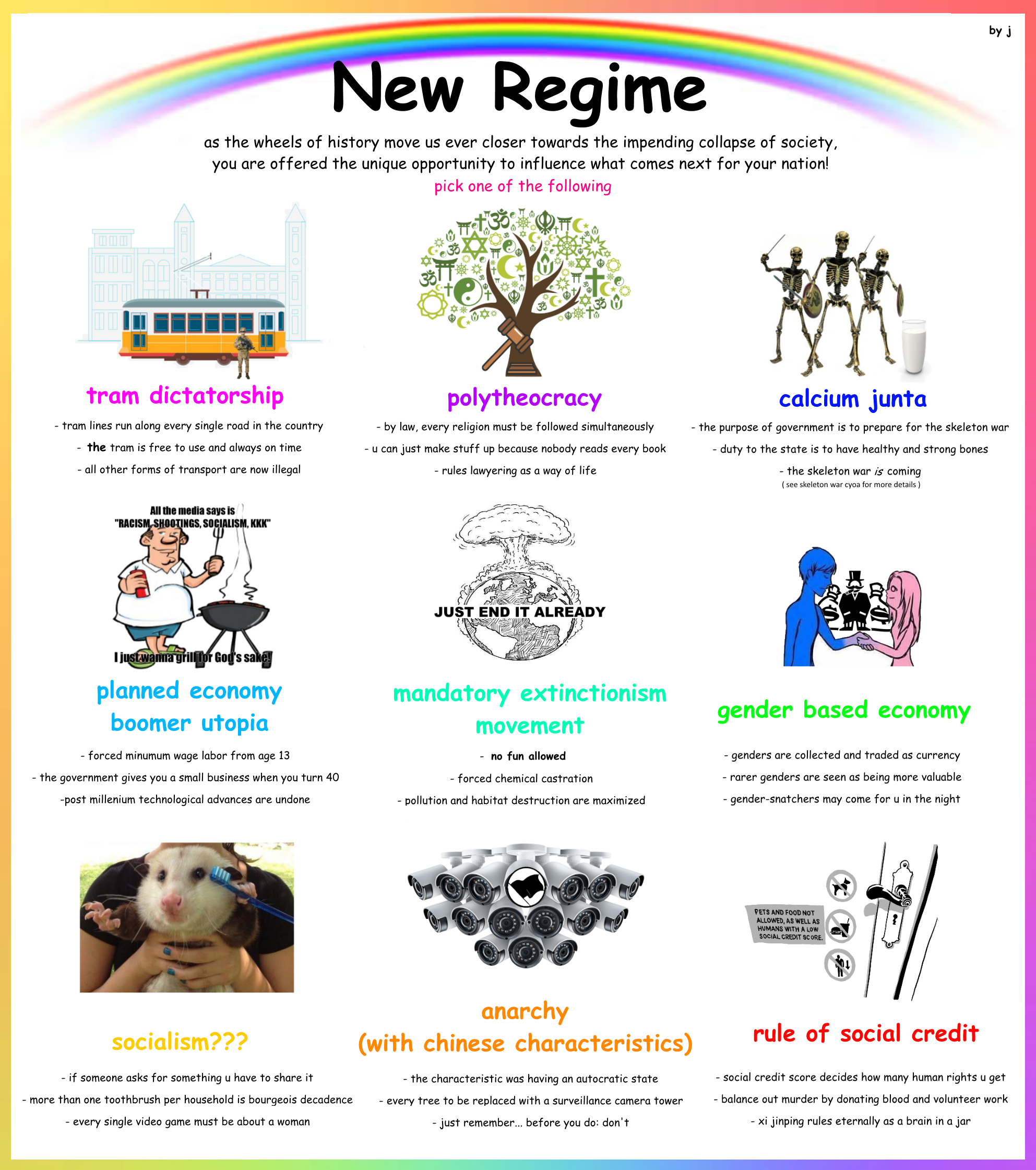 I'm always cool with people sharing my CYOAs wherever they want, writing stories about my CYOAs, or adjusting the rules to better fit their playstyles.